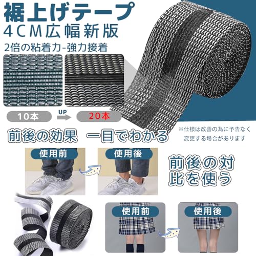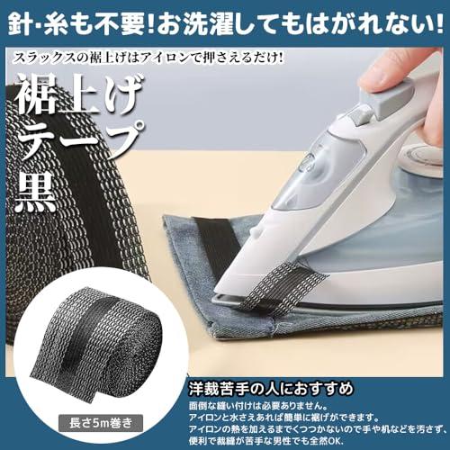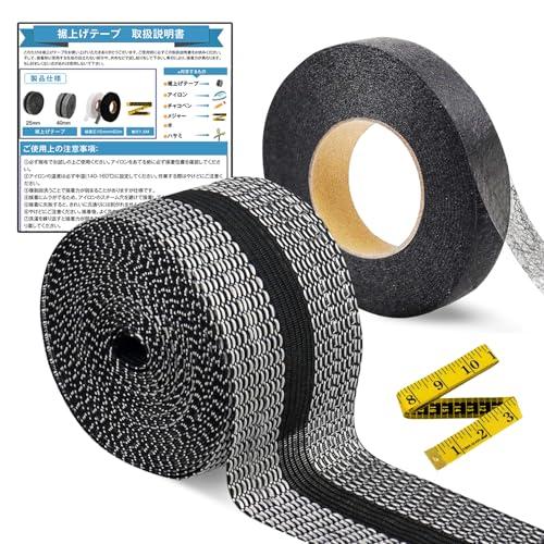 裾上げテープ すそあげテープ アイロン 強力 裾直しテープ 4cm広幅 接着芯テープ メジャー付き ズボンの裾上げ アイロン接着テープ 裾上げ ズボン裾上げテープ 布用 アイロン接着 ストレッチ ズボン スカート 裁縫上手 水洗い可能 (ブラック接着テープ 5M) ...