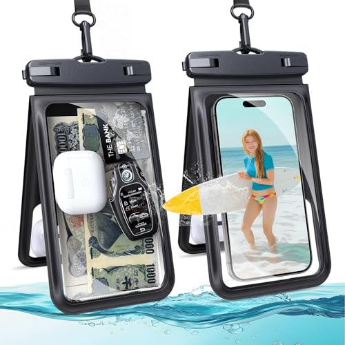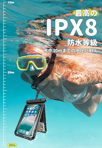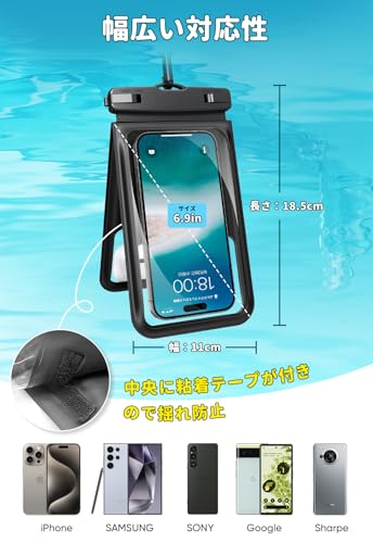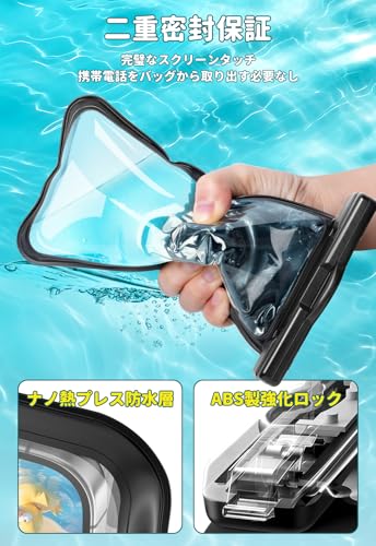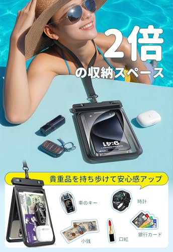 スマホ 防水 ケース 防水 小物入れ 水中 撮影 顔認証 大容量 首かけ バック お風呂 海 釣り 雨 潜水 水泳 プールなど適用 ポーチ [2個セット] iPhone 16 Pro Max/15 Plus/14/13/SE/MINI/OPPO/Xiaomi/Samsung/Pixel/Huawei/Xperia/android等携帯用 (ブラック ...