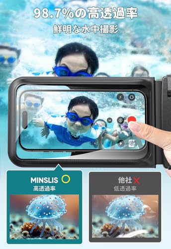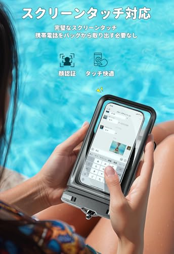 スマホ 防水 ケース 防水 小物入れ 水中 撮影 顔認証 大容量 首かけ バック お風呂 海 釣り 雨 潜水 水泳 プールなど適用 ポーチ [2個セット] iPhone 16 Pro Max/15 Plus/14/13/SE/MINI/OPPO/Xiaomi/Samsung/Pixel/Huawei/Xperia/android等携帯用 (ブラック 透明)