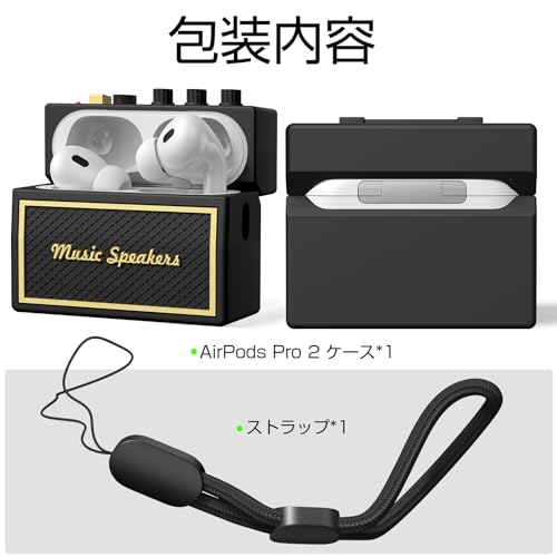 AirPods Pro 2 ケース 第1/2世代対応 エアーポッツプロ ケース カバー シリコンケース 3D 漫画 ステレオタイプ かわいいAirpods Pro 収納ケース 分離式 おしゃれ ワイヤレス充電対応 ストラップ付き LEDライト可視 2019/2022年発売用 シリコン素材 キズ防止 耐衝撃 軽量 防塵 紛失防止 持ち運び便利 (ブラック Pro2ケース)