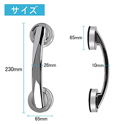 吸盤 手すり 吸盤 ドアハンドル 26MM厚さ幅強化版大サイズ手すり 強力吸盤取っ手 吸盤ドアノブ 補助ハンドル 浴室用手すり お風呂/介護/窓ガラス/トイレ/浴槽/階段/玄関/浴室用 入浴介助 立ち上がり補助 高齢者子供転倒予防 滑り止め 工具不要取付簡単 (26MM)...