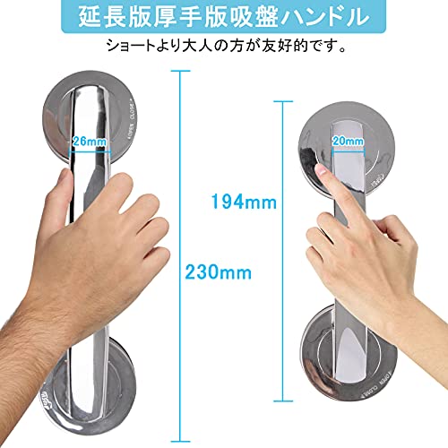吸盤 手すり 吸盤 ドアハンドル 26MM厚さ幅強化版大サイズ手すり 強力吸盤取っ手 吸盤ドアノブ 補助ハンドル 浴室用手すり お風呂/介護/窓ガラス/トイレ/浴槽/階段/玄関/浴室用 入浴介助 立ち上がり補助 高齢者子供転倒予防 滑り止め 工具不要取付簡単 (26MM)