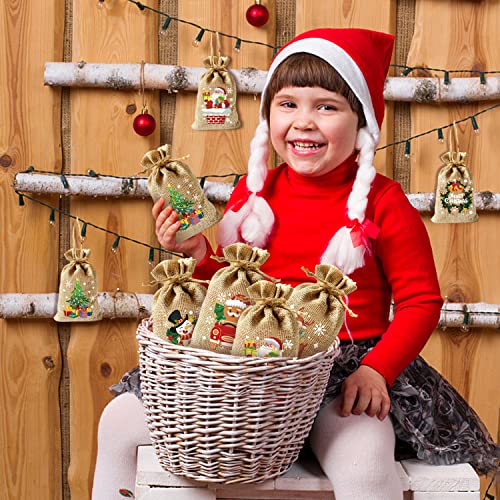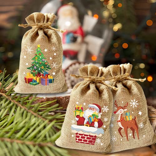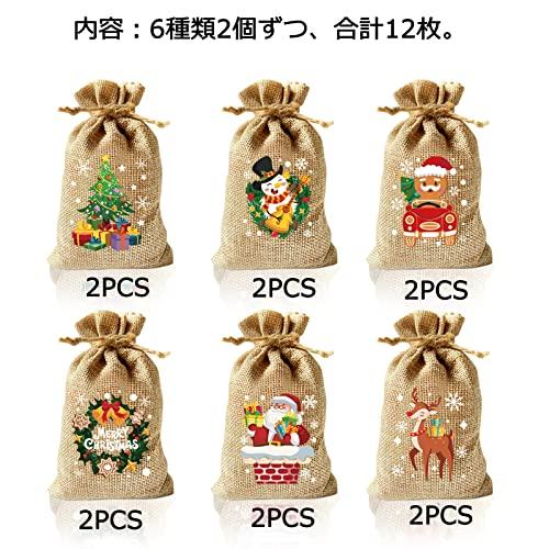 クリスマス 巾着袋 麻袋 10x15cm 12枚 ラッピング袋 お菓子バッグ お菓子入れ キッズ プレゼント 飾り プレゼント入れ サンタさん トナカイ (クリスマス 麻) 送料無料