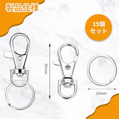ナスカン ナスカン キーホルダー 二重リン グ 15セット 二重リング キーホルダー 38mm 平キーリング ダブルリング 28mm シルバー 手作り DIY用