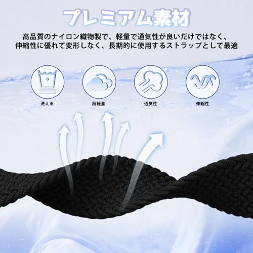 【高品質の素材】本バンドはナイロン編組生地で作らて、柔軟性があり、刺激がなく肌に優しく、通気性があり、汗に強く、耐久性があり、軽量で洗濯可能で、非常に快適な着用体験をもたらします。なお、伸縮性のある素材で、窮屈感がなく自然な着け心地を実現します。