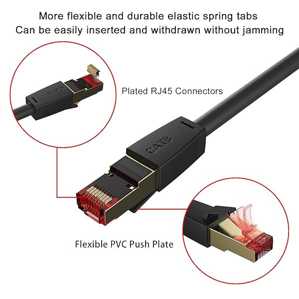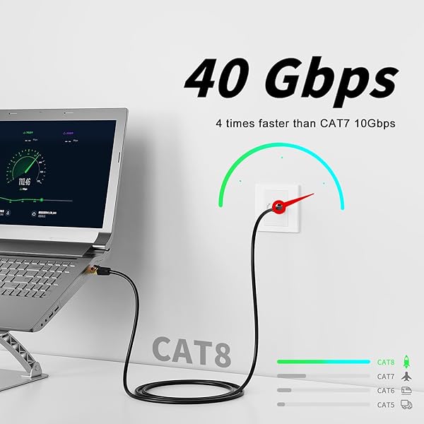 【転送速度の高速化】LANケーブルCAT8は40ギガビットイーサネットの「40GBASE-T」に対応して,伝送速度は最大40Gbps,伝送帯域は2000MHzまでをサポートします,CAT6の8倍、CAT7の4倍の伝送速度。ネットサーフィン、オンラインムービーの鑑賞、音楽鑑賞、ゲーム、オフィスワーク、ファイルのダウンロードなど、高速通信を楽しむことができます,ラグや遅延を気にすることなく。