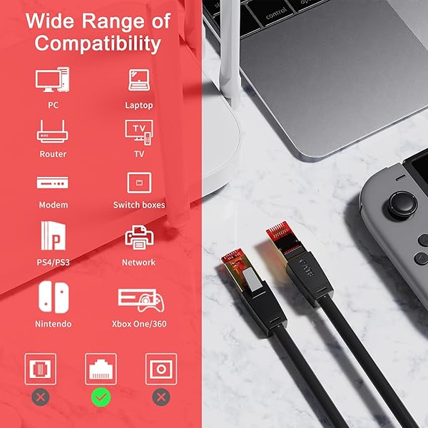【幅広い互換性】超高速 CAT8 12M LANケーブル、CAT7、CAT6、CAT5、CAT5Eケーブルなどと下位互換性があります。に適しています PC、ノートパソコン、コンピュータサーバ、プリンタ、ルータ、モデム、ネットワークスイッチボックス、ネットワークメディアプレーヤー、NAS、VoIP電話、IPカメラ、ラズベリーパイ4、PS3、PS4、PS5、X-box、クラウドデータサーバ、配線棚、カプラ、ハブ、スマートテレビなどのRJ45コネクタを搭載したデバイスにも適用します。