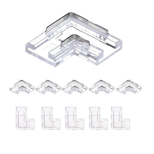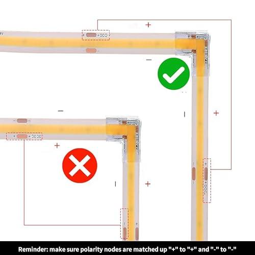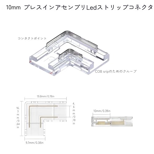10mm 2ピン 10個 L字型プレスイン式COB LEDストリップコネクタ 超薄型 90°右角コーナージョイント 単色5V/12V/24Vライトストリップ用 透明端子 安全接続