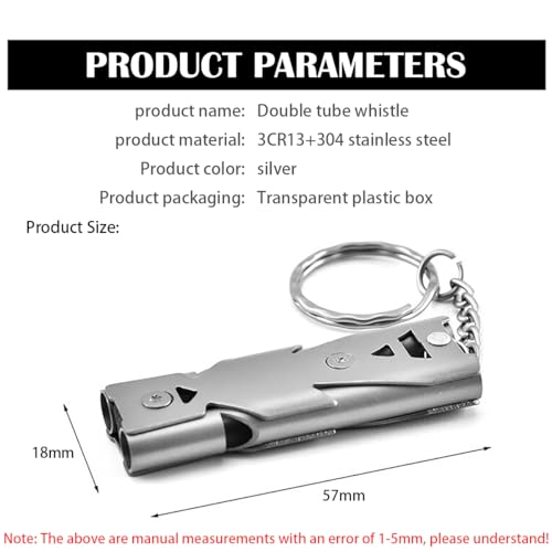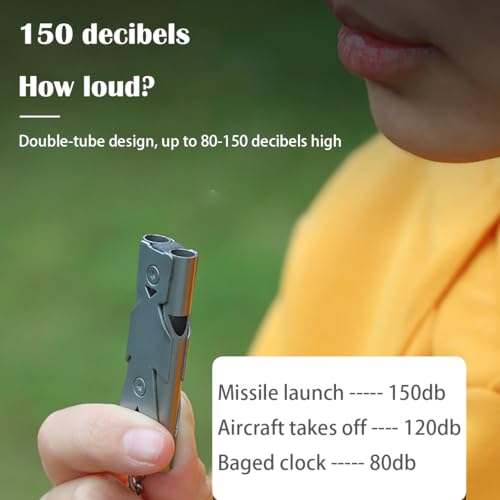 サバイバルホイッスル 高デシベル安全ホイッスル ストラップ付き キーチェーン 二連緊急ホイッスル 銀メッキ 80-150dB 学校 ジム アウトドアキャンプ ハイキングに最適 (2セット)