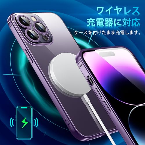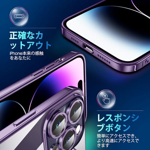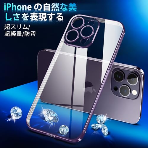 iPhone 14 Pro ケース シリコン クリア カメラレンズ保護 シリコン高精細透明 極薄でソフトな素肌感覚 耐衝撃 アイフォン 14 プロスマホカバー衝突防止エアバッグ付き 6.1インチ (ダークパープル)