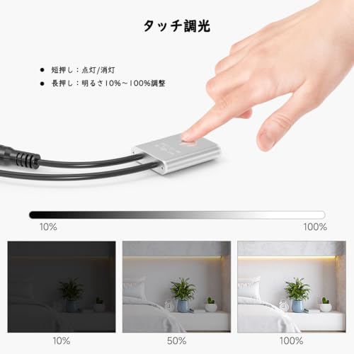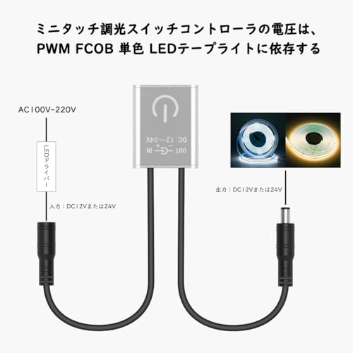 単色 LEDコントローラー Mini タッチ式 調光コントローラー 10%-100% 明るさ調整 タッチ調光スイッチ LED キャビネットライト FCOB COB LED ストリップ DC12V DC24V 最大入力3A 電源とLEDライトなし