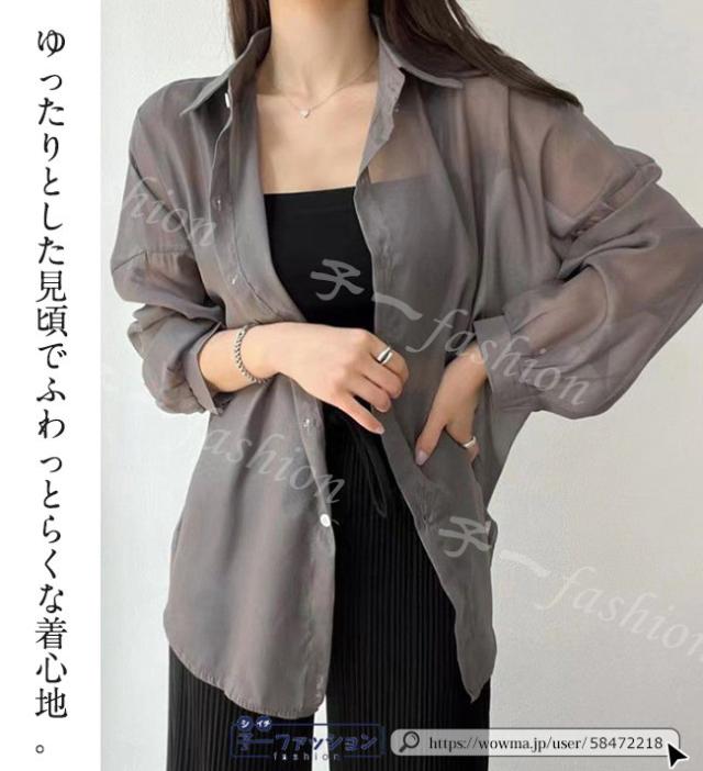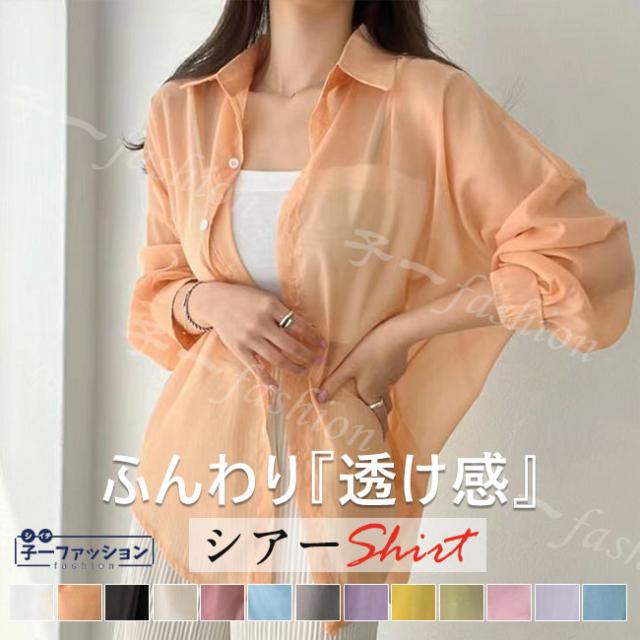 【2点まとめ買いで送料無料】 シアーシャツ トップス シャツ 1点単品販売 レディース 夏 羽織 春 秋 夏 ボリューム袖 ゆったり オーバーサイズ カジュアル ガーリー 長袖 ビッグシャツ オーバーシャツ 二の腕カバー 冷房対策 UV対策 送料無料 秋服 秋冬 バレンタイン