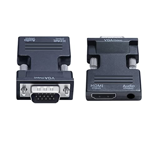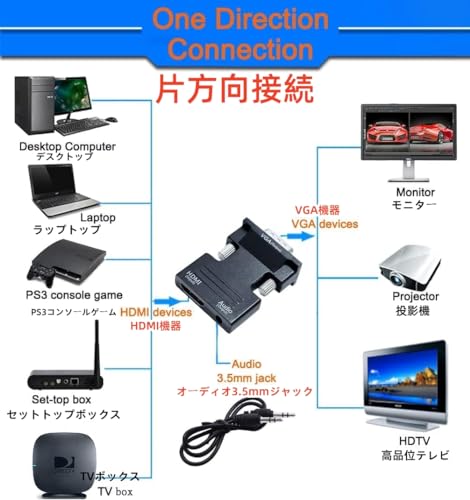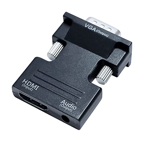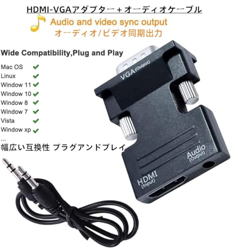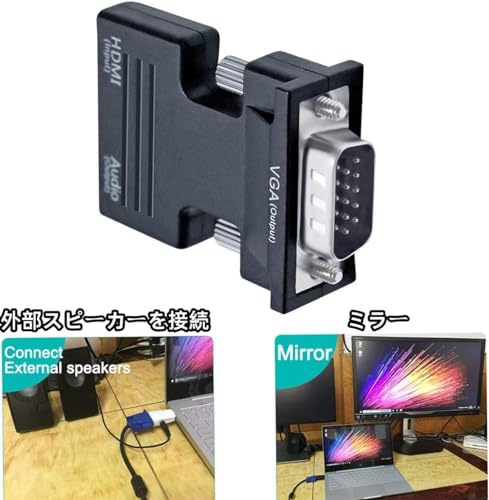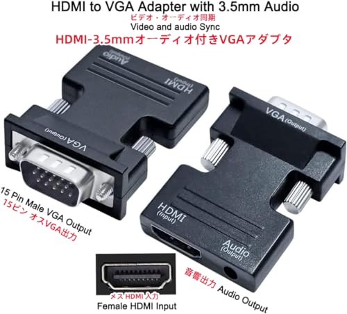 HDMI メス to VGA オス 変換 アダプター 音声出力対応 HDMI ミニD-sub15ピン 変換 コネクター プラグ フルHD 1080p ビデオ出力 中継 延長 コンバーター 3.5mmミニジャックオーディオケーブル付き