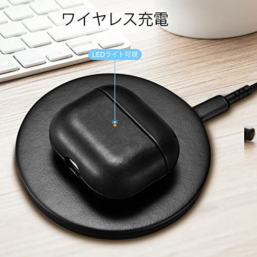 ケース for AirPods Pro (2019年10月発売専用) AirPods Pro レザーケース カバー エアーポッズプロケース 分離式 全面保護 落下防止 耐衝撃 紛失防止 装着充電可能 充電便利 LEDライト可視 ワイヤレス充電対応 持ち運びに便利 (黒)
