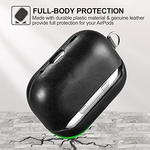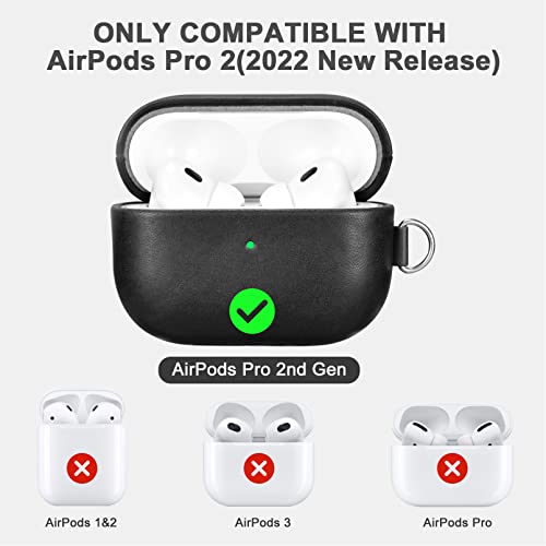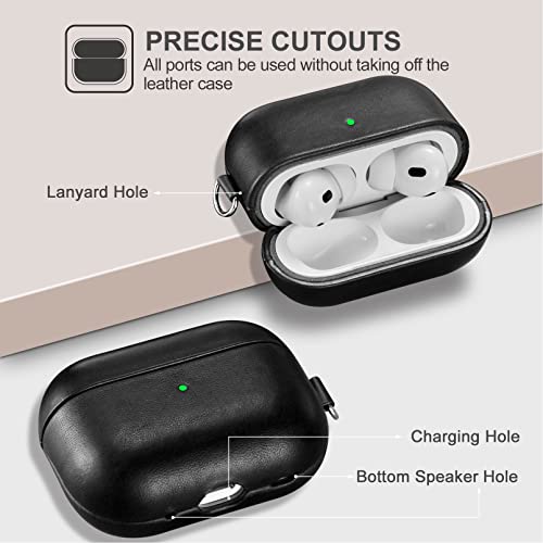 AirPods Pro 2 ケース 本革(2022年9月発売専用)落下防止 耐衝撃 保護ケース AirPods Pro2 レザーケース カバー 分離式 全面保護 エアーポッズプロ2 ケース 装着充電可能 LEDライト可視 ワイヤレス充電対応 持ち運びに便利 ストラップ付き(ブラック)