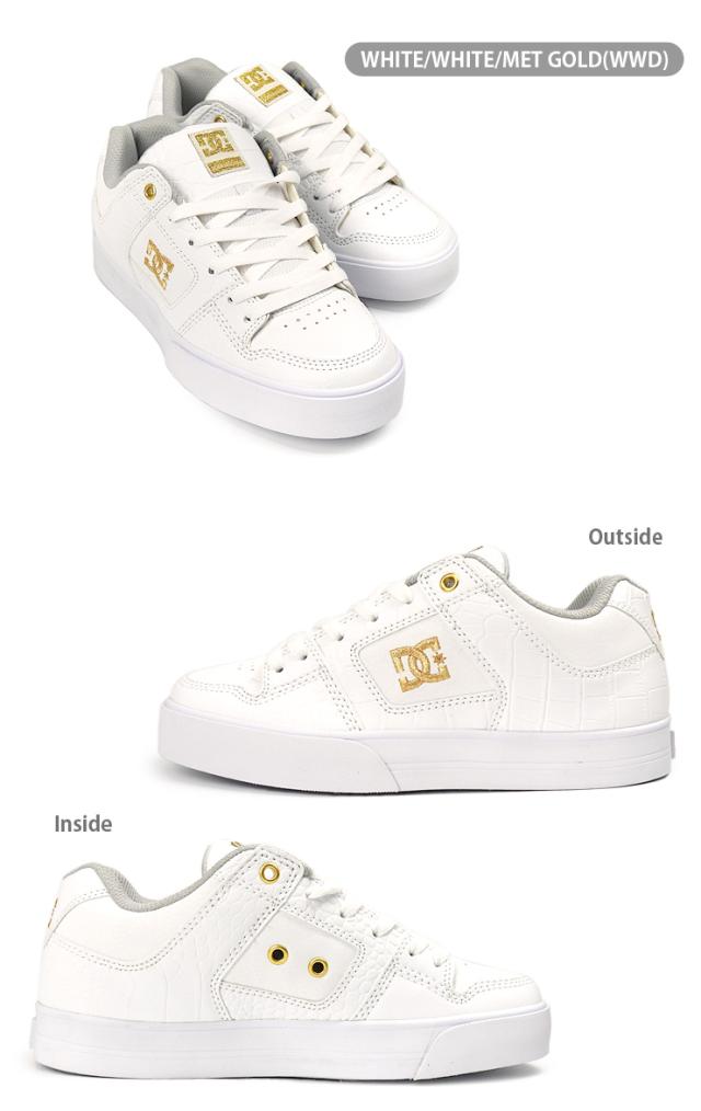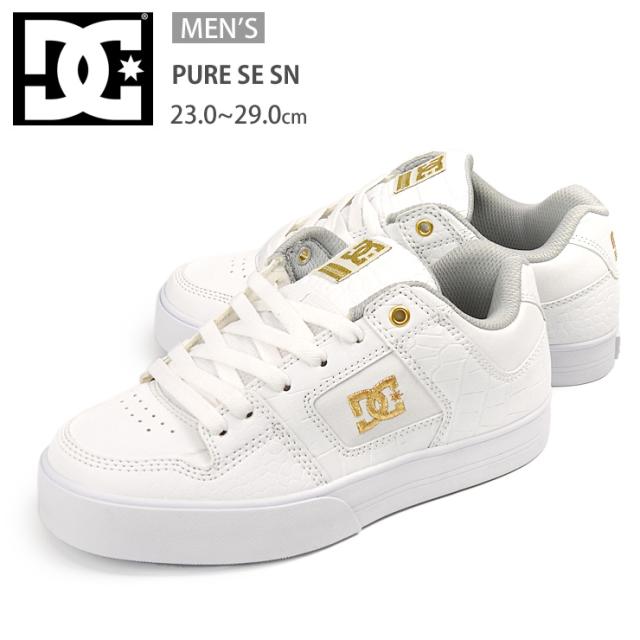 【箱アウトレット】DC SHOES PURE SE SN メンズ スニーカー シューズ 23 24 25 26 27 27.5 28 29 ホワイト ディーシー シューズ DM244021 ADYS100747 ピュア ローカット 靴 くつ 男性 紳士 合成皮革 合皮 クロコ型押し 白 WHITE/WHITE/MET GOLD(WWD) sh2128