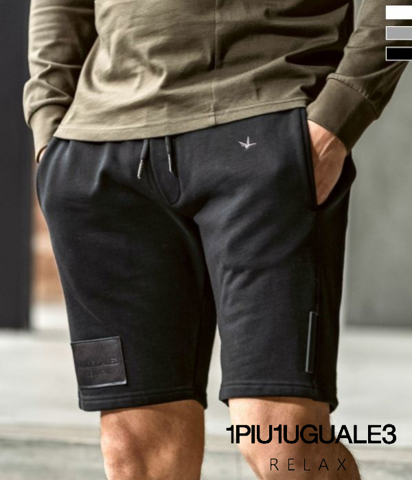 1PIU1UGUALE3 RELAX ウノピゥウノウグァーレトレ リラックス レザーパッチスウェットショーツ メンズ ハーフパンツ 短パン カジュアル スポーツ