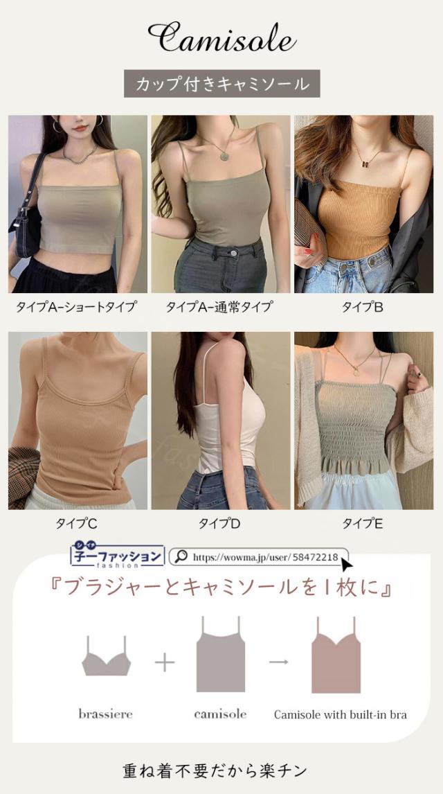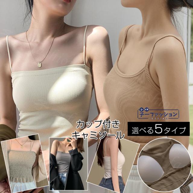 <72H限定・1点あたり850円!2点同時購入&クーポン利用で>キャミソール カップ付きキャミソール 選べる5タイプ 春新作 新作 ショート丈 カップ付きインナー シンプルキャミソールカップ リブ ナローストラップ インナー レディース ノンワイヤー 送料無料 秋冬 バレンタイン