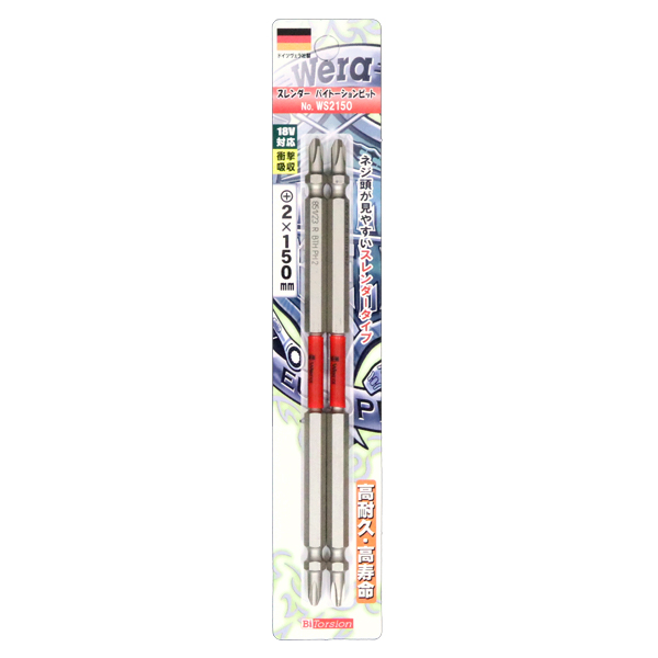 【メール便可】Wera ヴェラ スレンダー バイトーションビット +2×150mm 2本入 WS2150