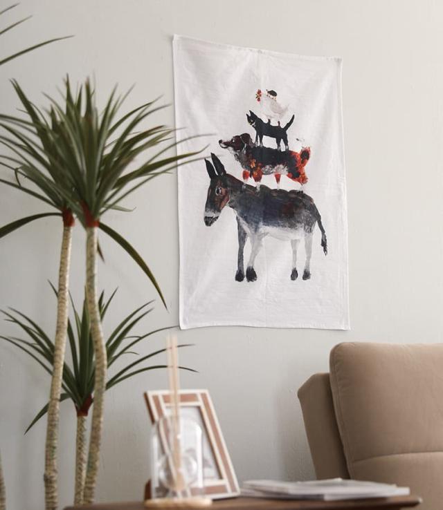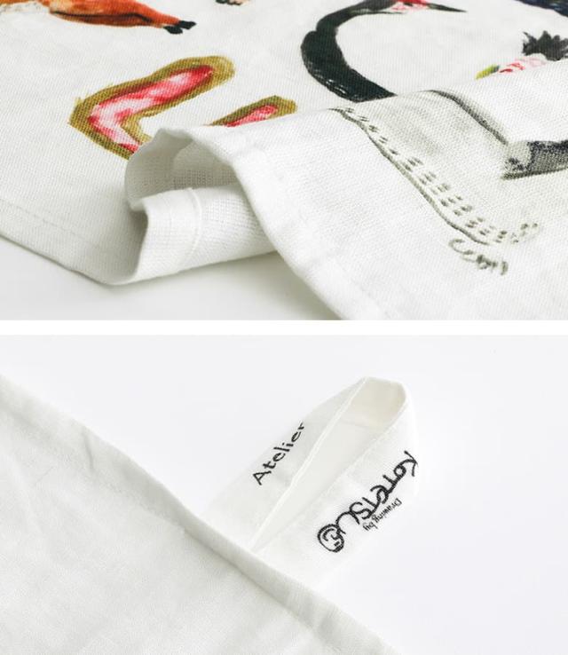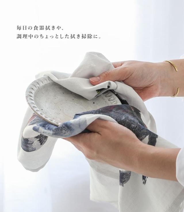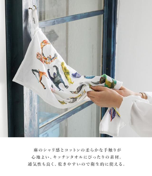 キッチンタオル キッチンクロス タオル ふきん キッチン 食器拭き 手拭きタオル 布巾 食器拭きクロス ループ付き おしゃれ かわいい コットン リネン ギフト プレゼント タペストリー アトリエコテツ 動物 絵 飾れる ナチュラル 台所 乾きやすい◇※メール便可※【5】