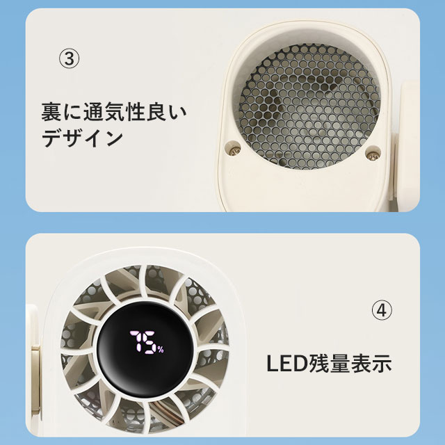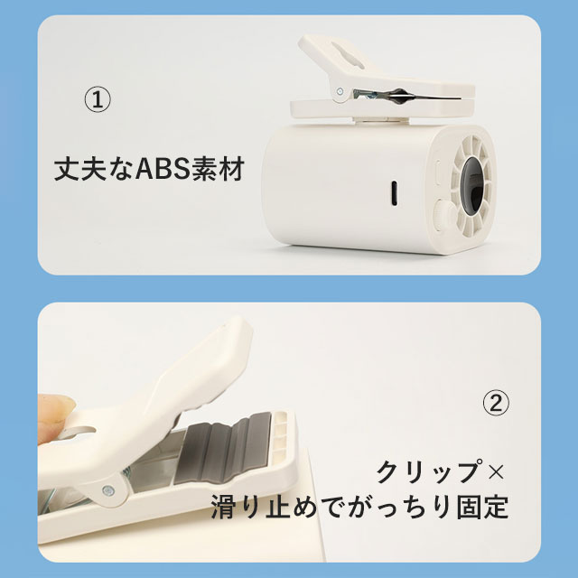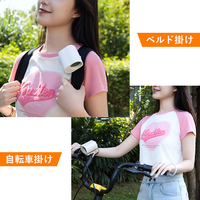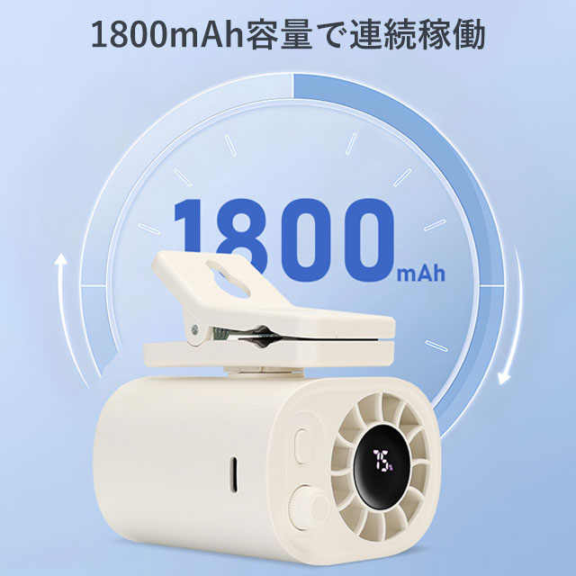 | 商品説明 | ◆7WAY多機能で、シーンを問わず大活躍! 日傘に装着可能なクリップ式をはじめ、首にかけて使えるネックストラップ、腰のベルトに取り付け可能なベルト対応、机に置ける卓上使用、持ち歩きできる手持ちスタイル、腰に掛けて使える腰掛け、さらには壁に掛けての壁掛け使用まで、合計7通りの使い方に対応。屋内外問わず、通勤・通学・お祭り・アウトドアなどあらゆるシーンで、あなたにピッタリのスタイルで快適な風をお届けします。 ◆圧倒的な固定力 × 360°クランプでマルチに対応! 本体にはD型クリップと滑り止めが搭載されており、ダブルロック設計で驚くほどしっかり固定可能。クランプは360度回転に対応しており、自転車、ランニングマシン、ベビーカー、ベッド(厚さ30mm以内)など、様々な場所に自由自在に取り付け可能。さらに、市販されている99.9%の日傘のシャフト径にも対応しているので、夏のお出かけにも安心して使えます。 ◆超強力送風 × 無段階風量調整(1〜100段階)で思い通りの涼しさ! 誇る5枚羽根のブラシレスモーターを搭載し、軽やかな微風からパワフルな強風まで、使用環境に応じた最適な風を送り出せます。風量は1〜100段階で細かく無段階調整でき、スムーズにコントロール。扇風機としての基本性能を高いレベルで実現し、1秒で快適な涼風を手に入れられます。 ◆最大4時間連続稼働の1800mAh大容量バッテリー搭載! 高性能バッテリーを内蔵し、最弱モードでは最大4時間もの連続使用が可能。風量を中程度にしても約3時間、強風モードでも2.2時間使えるため、通勤や屋外イベント、キャンプなど長時間の使用にも安心。軽量かつコンパクトで、バッグに入れても邪魔になりません。 |