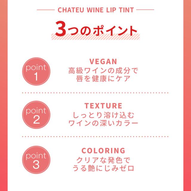 | 商品説明 | シャトー ワイン リップティント(7g) ・高級ワインの成分で唇を健康にケア ・深い余韻を残すワインのように、唇に長くカラーを残します ・艶があり、華やかなメイクのできるウォーターティントです ・動物実験や、動物由来成分を使っていないと認定されたヴィーガン認証コスメ シャトー ワイン リップティント フォンデュ(5g) ・柔らかく溶けるフォンデュテクスチャー ・重ねることで完成するあなただけのカラー ・ふんわりと染み込む上品なカラー ・10秒で定着!べたつかない軽やかさ&長時間持続カラー ・アイメイク、チーク、リップとして使えるマルチコスメ |