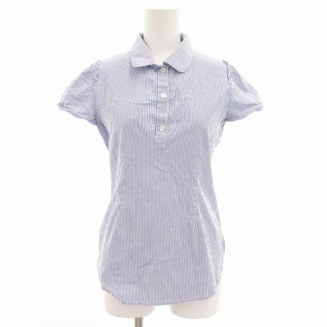 【中古】セオリー Theory 美品 シャツ ブラウス ストライプ 半袖 S 青 ブルー /AE レディース