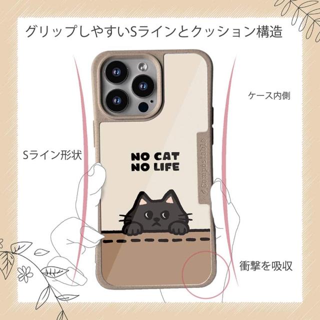 | ケースについて | 背面の内側に入れ込むデザインシートで、シーンに合わせて着せ替え可能。また、グリップしやすいクッション構造で、本体重量は約35gと軽減化を実現。さらにSライン形状で、究極に押しやすいボタン設計(切り込みが入ることで押し込む力を軽減)、背面のカメラ・レンズを保護する高さ設計となっております。生分解性プラスチック素材ながらも着脱もしやすく、割れない・指紋防止加工を施しています。 |
