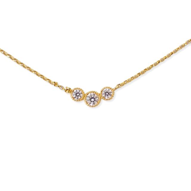 輝きの美しいダイヤモンドを3pcあしらったエレガントなペンダントです。