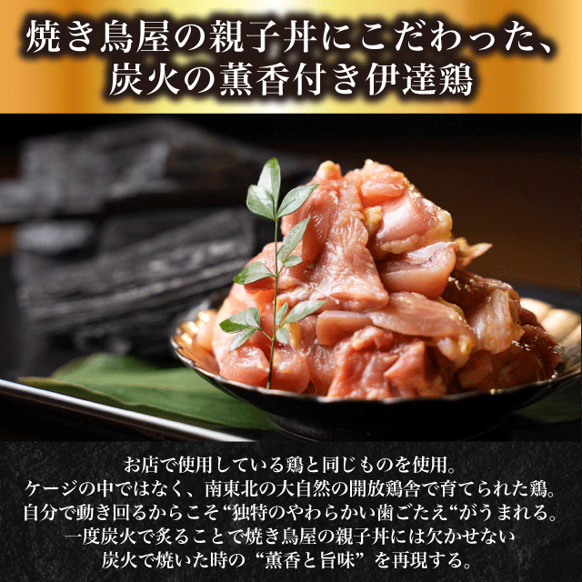 焼き鳥屋の親子丼にこだわり、炭の薫香を付けた味わい深い鶏でつくる親子丼