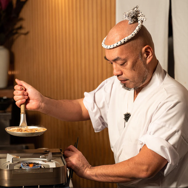 コースの〆に出す丼なので、お茶漬けを啜るように飲める親子丼を意識しています。親子丼というよりも、鶏肉を閉じ込めた卵かけご飯という軽い感じです。
