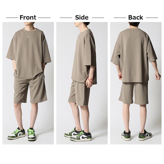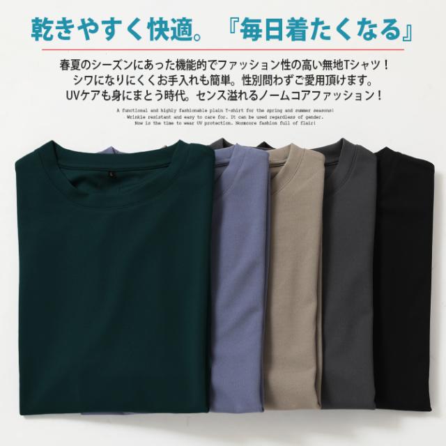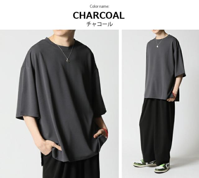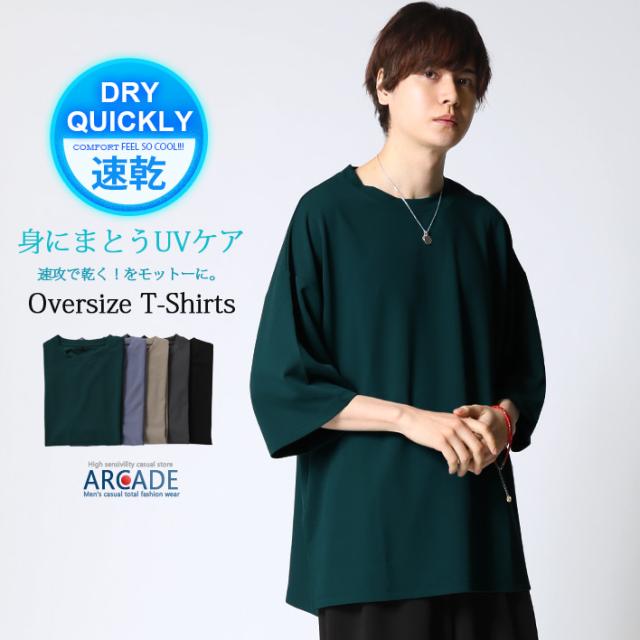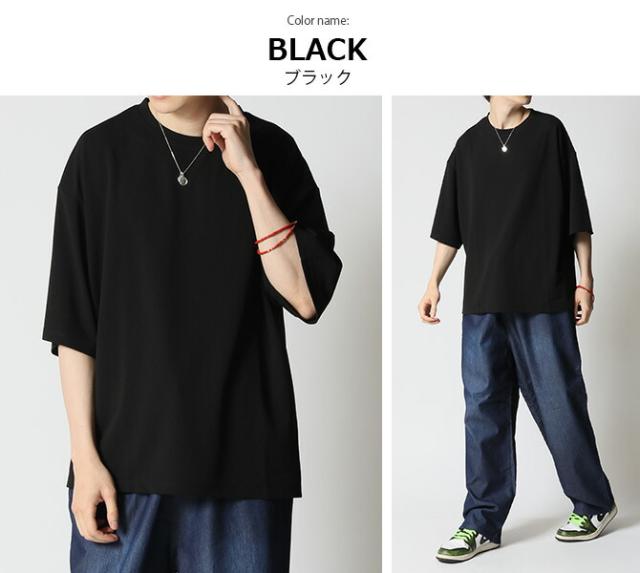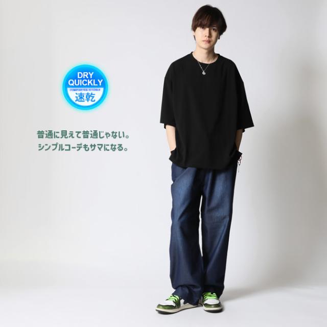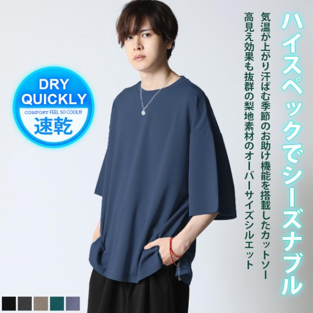 冷感速乾 クイックドライ 快適 オーバーサイズ Tシャツ メンズ 夏 梨地素材 スリット入りtシャツ