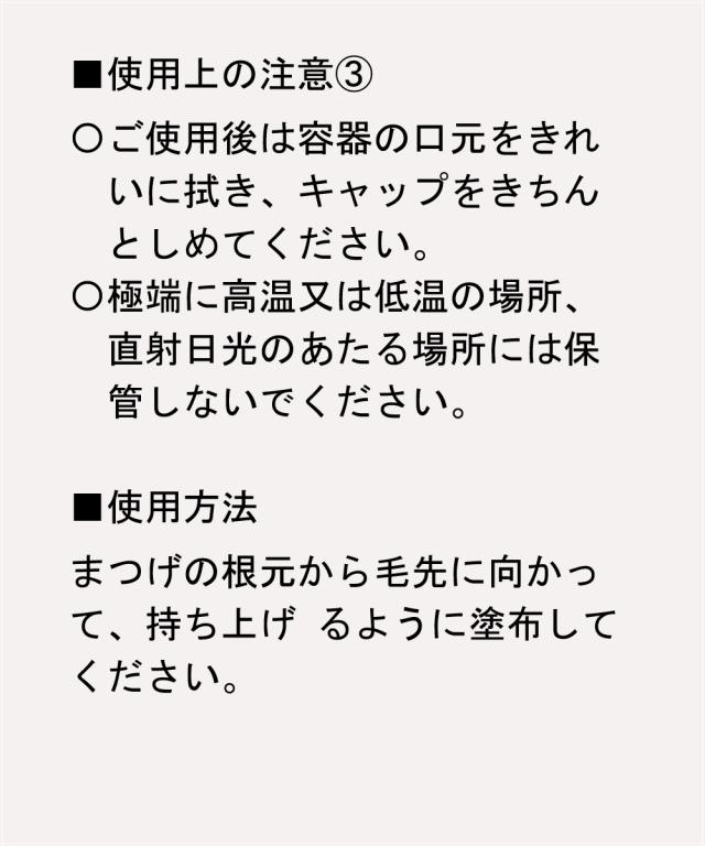 ■使用方法 まつげの根元から毛先に向かって、持ち上げ るように塗布してください ■内容量 5g 原産国:中国製