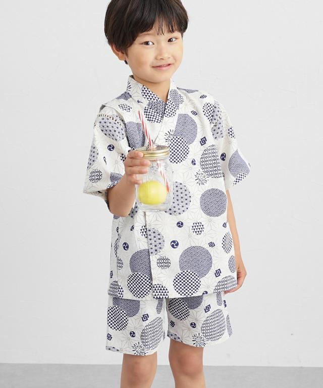 甚平 子供服 キッズ 綿100% スーツ 男の子 女の子 夏 お祭り 花火大会 | 身長80/90cm | ニッセン nissen