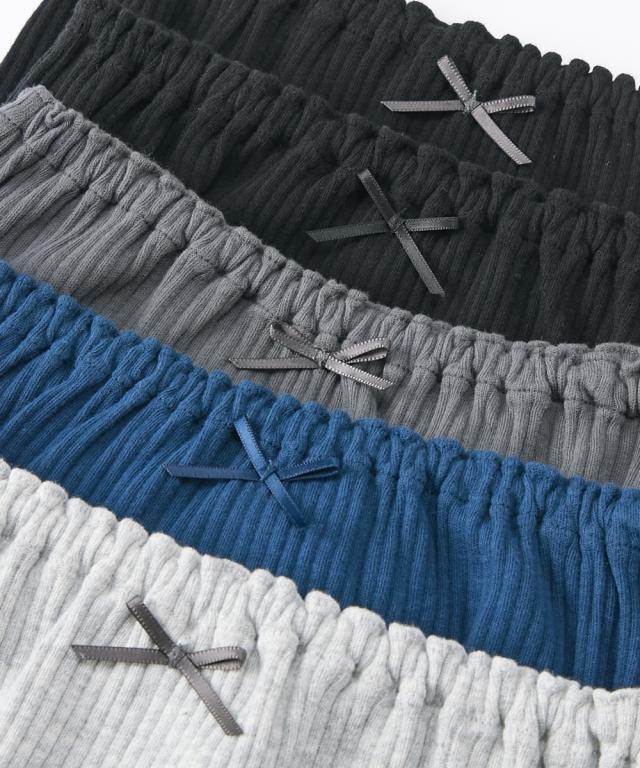 綿100%無地モノトーン系リブショーツ5枚組☆ プリントがなく無地でモノトーンの落ち着いた色のショーツを5枚組にしました。 〜特徴〜 ■身生地は綿100%リブ素材 毎日身につけるものだから、やわらかくて肌ざわり抜群の綿100%の生地にこだわりました。 リブ素材なので、体の動きにやさしくフィットします。 ■ゴムが直接肌にあたらない ウエストと足口のゴムを身生地にくるんでいるから、やさしいはき心地です。 ■無地 プリントが苦手、シンプルが好きなお子様におすすめです。 前後がわかりようにリボンがついています。 ■120cm〜165cmの6サイズ展開 小学校低学年から中学生のお子様までご着用いただけます。 ■お名前ネーム付 お着替え時に紛失の心配がないように、内側にお名前ネーム欄をつけました。 ■ウエストジャストサイズ 深ばきでもなく、浅ばきでもない、ちょうどいいはき込み丈になります。 ■セット組 毎日着用して欲しいから、洗い替えに便利なセット組でお届けします。