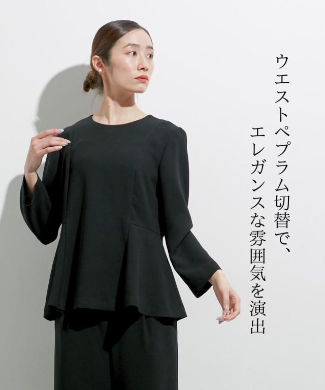 喪服 礼服 ブラックフォーマル レディース 日本製生地使用 洗える防しわ慶弔両用取り外しフリル襟 デザイン ブラウス +ワイド パンツ セットアップ 〔Callarus〕
