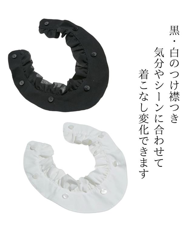 品質=[ブラウス]本体:ポリエステル100%(織物)黒襟:ポリエステル100%(織物)白襟:ポリエステル90%・綿10%(織物)[パンツ] ポリエステル100%(織物) 【裏地】ブラウス:有(身頃部)、パンツ:無 ブラウス:後ホック付ファスナー開 パンツ:前ファスナー内ホック開 ウエスト後ゴム入 ポケット両脇 ※フリル襟(白)フリル襟(黒)付き ※この商品は2点同サイズのみで販売します。 原産国:中国製 備考:洗濯機OK ネット使用