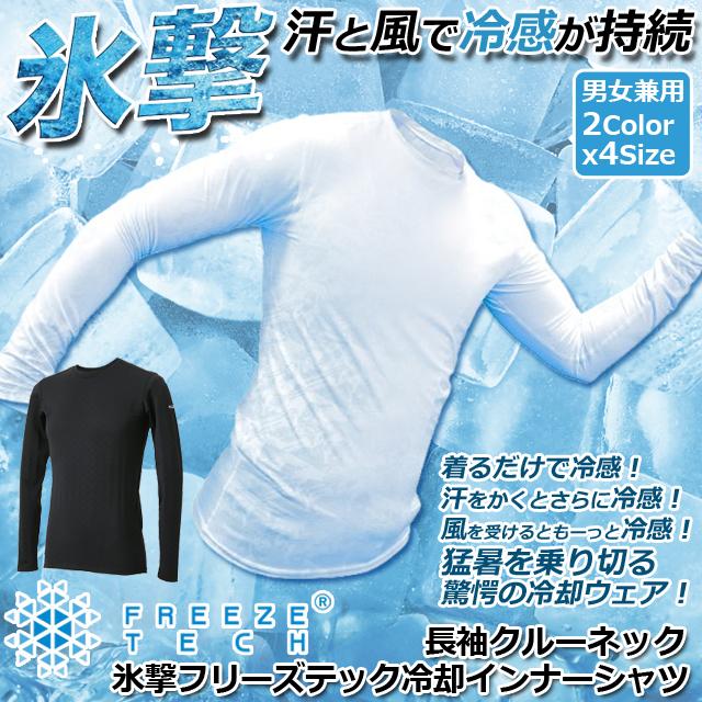氷撃フリーズテック 冷却インナーシャツ 長袖クルーネック ホンマでっかTV 男女兼用 熱中症対策 暑さ対策 FREEZE TECH 冷感ウェア 冷感プリント