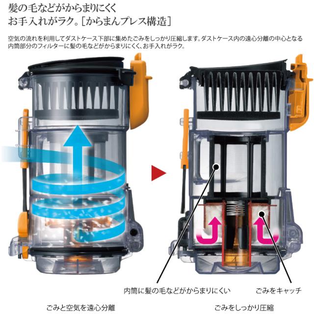 ダストケースは分解でき、水洗い可能。[からまんブラシ]もヘッドから取り外し、水洗いできます。