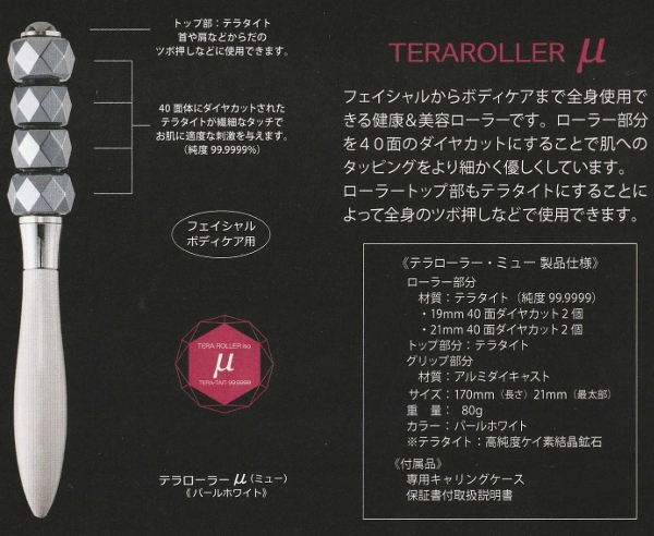 テラローラー ミュー 美顔ローラー 美顔器 TERA ROLLER μ フェイシャル用 ボディケア用 フェイシャルローラー フェイスローラー テラタイト テラタイトローラー 美容ローラー 美顔 美容 ローラー 目元 額 眉間 目尻 ほうれい線 ボディローラー ボディ用ローラー おすすめ
