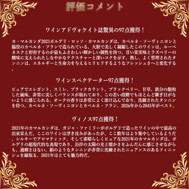 カ マルカンダ カマルカンダ 2021 アンジェロ ガイア カマルカンダ エステート元詰 正規代理店輸入品 DOCGボルゲリ ロッソ 赤 辛口