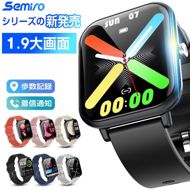 スマートウォッチ 1.9インチ大画面 24H健康管理 着信通知 腕時計 日本製センサー 歩数 睡眠 心拍数 防水 スマートブレスレット