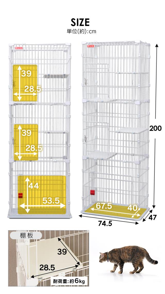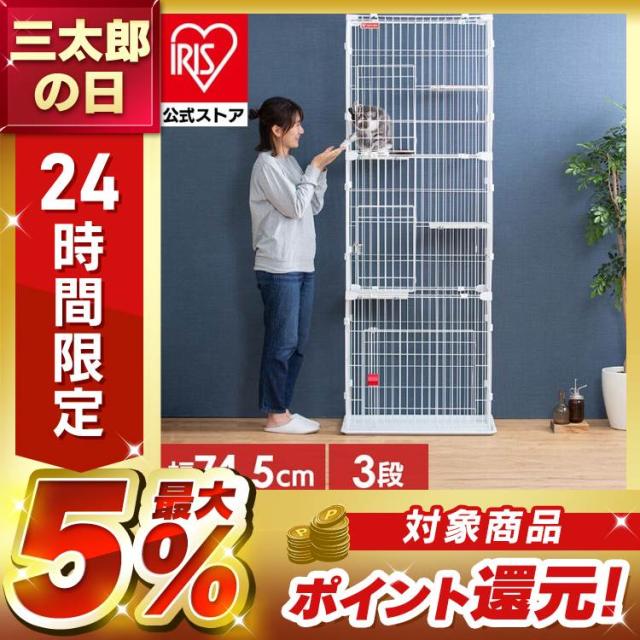 猫 ケージ 3段 猫 ゲージ スリム 猫ケージ 3段 三段 省スペース 多頭飼い スリムキャットケージ3段 PSCC-753 アイリスオーヤマ スリムケージ 子猫 組立 簡単 転倒防止 チェーン付 脱走防止