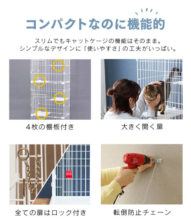 お部屋にスッキリおけるスリムタイプのキャットケージです。