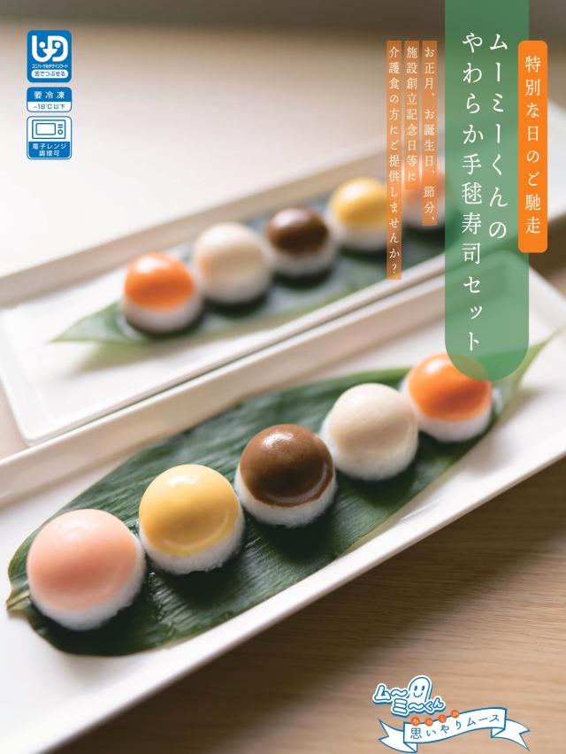【介護食】冷凍 やわらか手毬寿司セット 2パック入り ムース食 区分3 舌でつぶせる ミキサー食 刻み食 嚥下食 日本ケアミール やわらかい 食事 ムーミーくん 慶事 催事 行事 送料無料