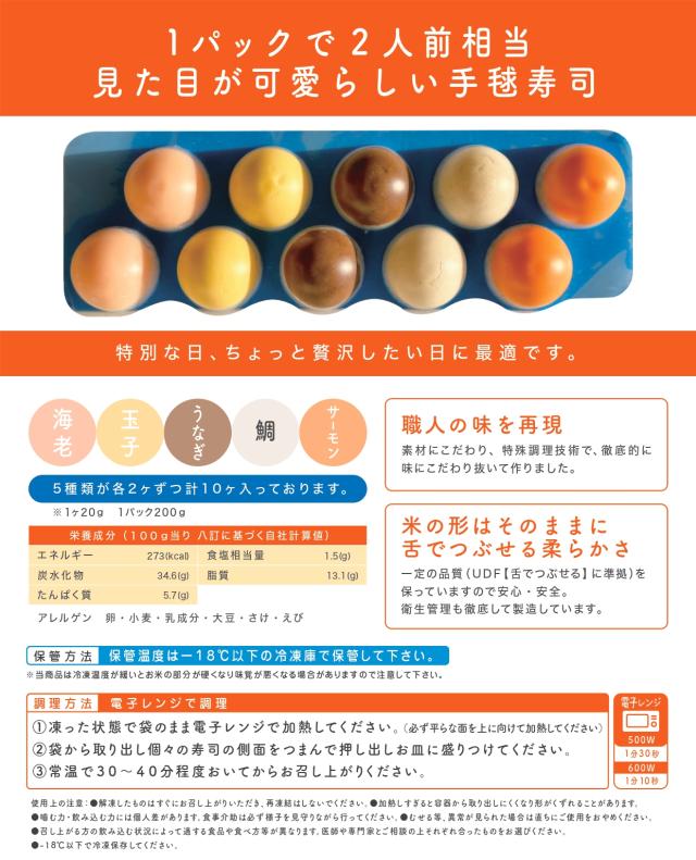 (海老×2ヶ、たまご×2ヶ、うなぎ×2ヶ、鯛×2ヶ、サーモン×2ヶ)