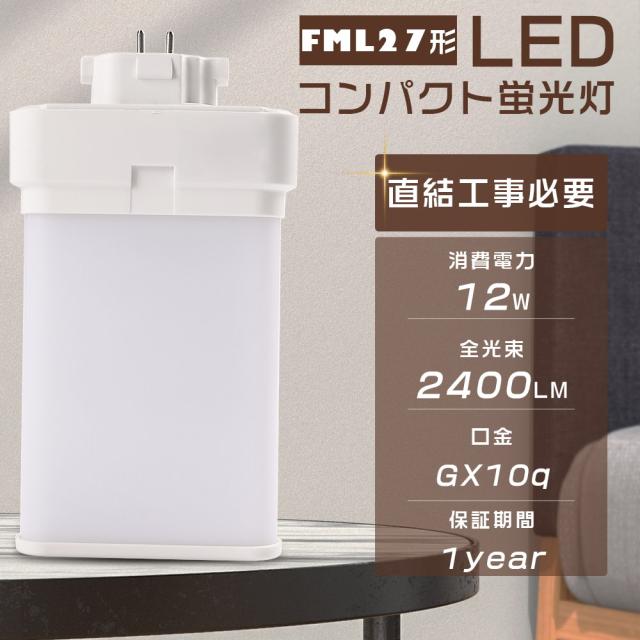 LED蛍光灯 FML27形 FML27EX-N FML27EXN 昼白色5000K ツイン蛍光灯 FML27型 代替用LED蛍光灯 LEDランプ LEDツイン蛍光灯 LED化 FML27W形対応 LED照明器具 LEDコンパクト蛍光灯 口金GX10q 消費電力12W 全光束2400LM LED電球 節電 家庭照明 店舗照明 1年保証 配線工事必須