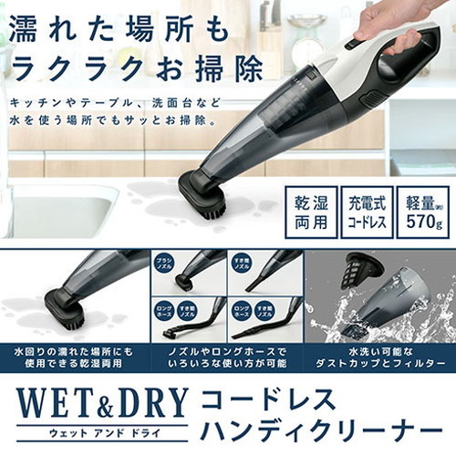 ベルソス ウェットアンドドライ コードレスハンディクリーナー キッチン・テーブル・洗面台など濡れた場所をラクラク掃除 VS-6005【送料無料】