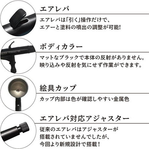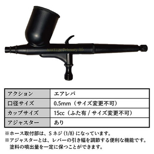 エアテックス AIRTEX エアブラシ Primary05+真鍮製エアレバ 0.5mm 一度で広く吹き付け ブラック PR05【送料無料】
