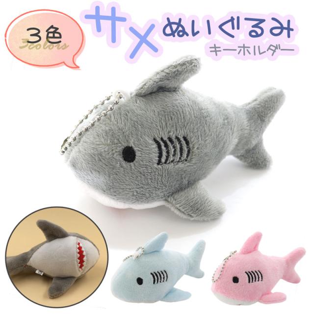 送料無料 3カラー サメ シャーク ぬいぐるみ キーホルダー かわいい ストラップ チャーム インテリア 鮫 海 軟骨魚類 深海 マスコット 人形